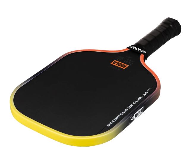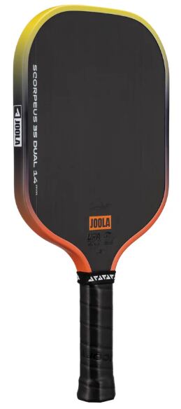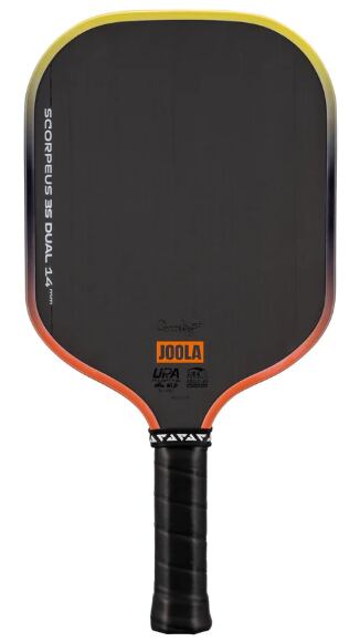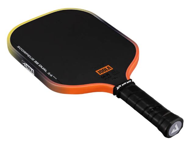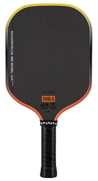 アナ・ブライト スコーピアス 3S デュアル 14mmのワイドボディデザインは、守備的なスタイルのプレーヤーや、キッチンでの激しい攻防戦で素早い反応を重視するプレーヤーに最適です。エッジガードは、沈む夕日をイメージさせるオレンジとイエローのグラデーションカラーで彩られています。カラーと認証の両方を兼ね備えたこのパドルは、UPA-Aプロ認証とUSAP PBCoR.43認証の両方を取得しています。
